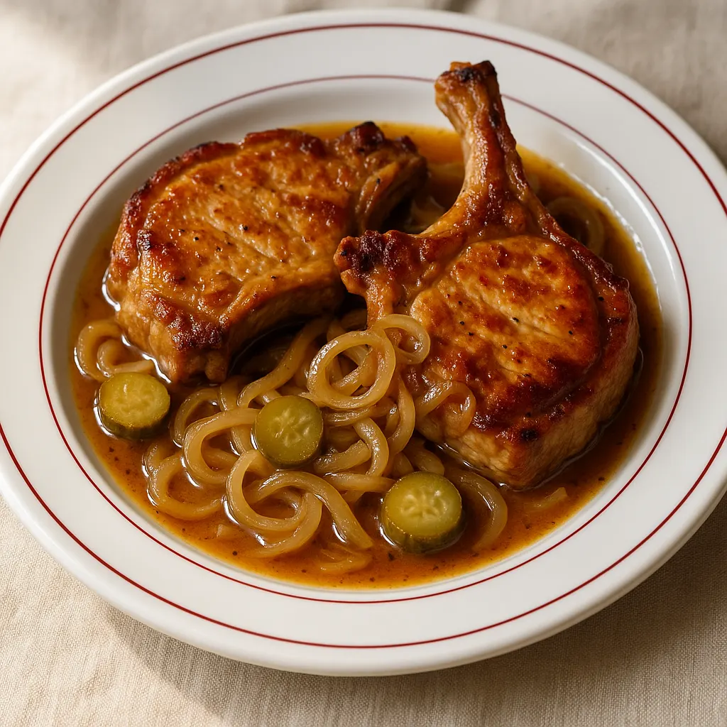 Les côtes de porc charcutières ont le goût des plats de bistrot directs et nets. La recette repose sur peu d’ingrédients, mais chaque étape compte. Il faut bien colorer la viande, faire fondre les oignons sans les brunir, puis monter une sauce courte qui garde de la vivacité sans devenir trop forte.