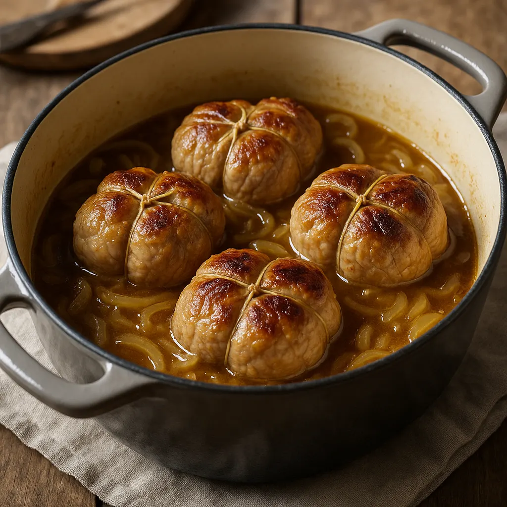Les paupiettes de porc font partie de ces plats de cocotte qu’on refait volontiers. La préparation est simple, mais quelques détails changent vraiment le goût à l’arrivée. Le premier, c’est la coloration de la viande. Le second, c’est la cuisson douce, avec juste assez de liquide pour former une sauce courte aux oignons.