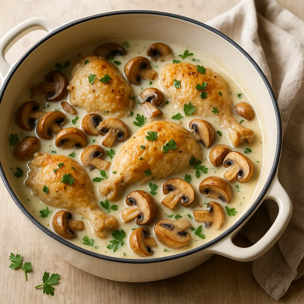 Vous pouvez les mettre directement dans la cocotte, mais une cuisson rapide à la poêle donne un meilleur goût et une texture plus nette. Ils rendent d’abord leur eau, puis commencent à dorer. C’est à ce moment qu’il faut les ajouter au poulet, quand celui-ci est presque cuit.