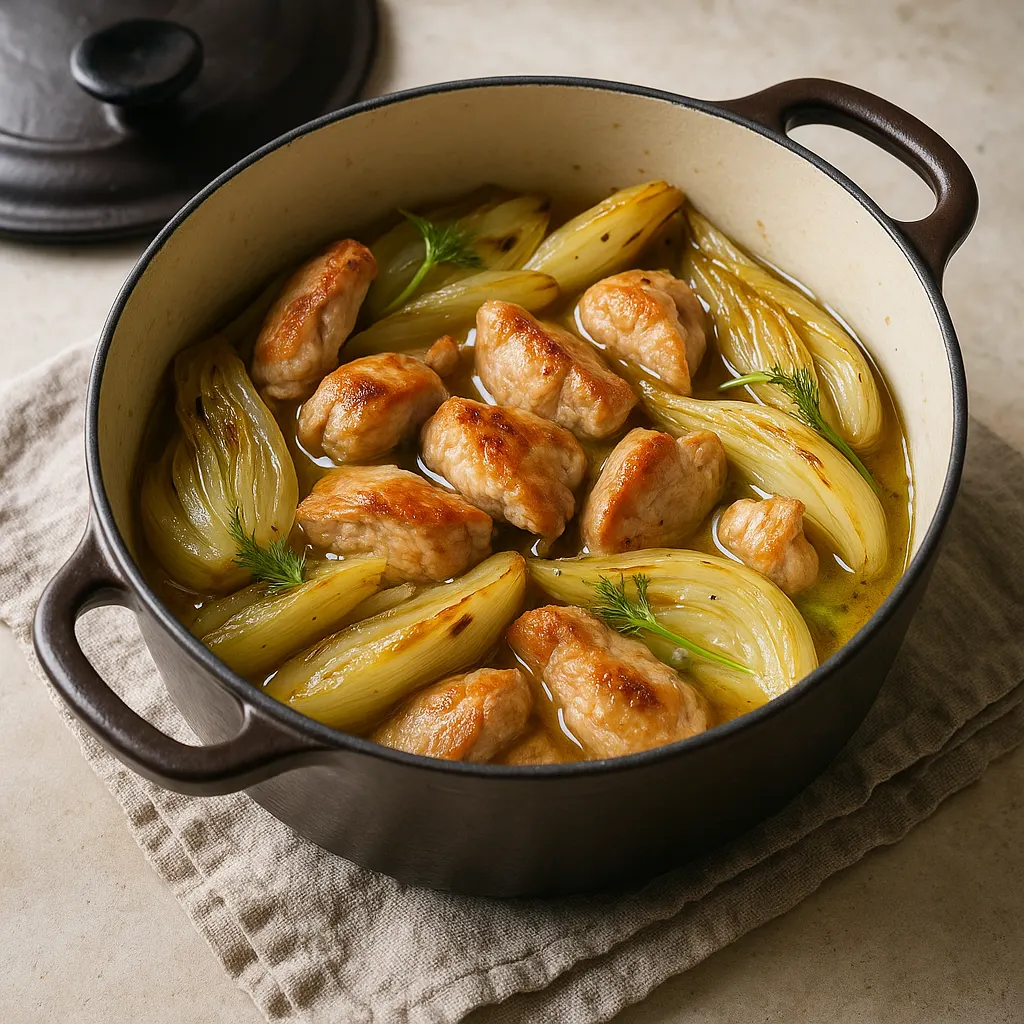 Salez avec mesure au début, puis goûtez en fin de cuisson avant de rectifier. Le bouillon réduit, la viande est déjà assaisonnée, et le fenouil concentre aussi les saveurs. Un peu de poivre suffit souvent. Si la note anisée vous semble trop nette, laissez encore réduire quelques minutes à découvert.
