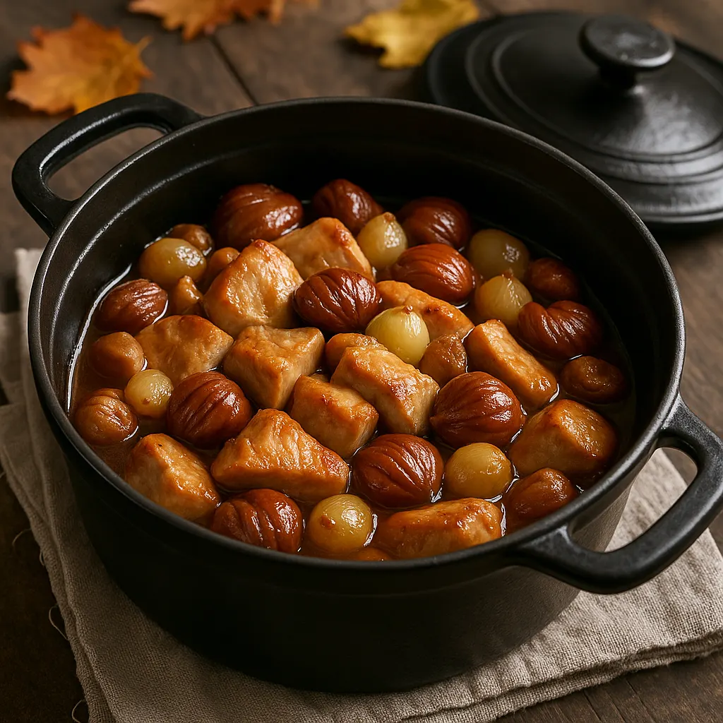 Le sauté de dinde aux marrons est une cocotte de saison qui demande peu d’ingrédients et une cuisson attentive. L’idée est simple : bien colorer la viande, laisser les oignons fondre doucement, puis ajouter les marrons assez tard pour qu’ils gardent leur forme. Le jus doit rester court, sans noyer les morceaux.