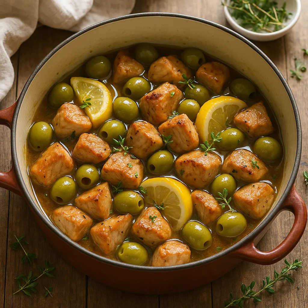 Ce sauté de dinde reprend les bases d’une cocotte provençale, avec un citron qui apporte un peu plus de relief. La sauce reste courte, sans tomate, juste assez liée pour napper les morceaux et les olives. C’est un plat de cuisson douce, mais le début compte beaucoup : si la viande dore bien, le jus aura plus de goût sans demander grand-chose de plus.