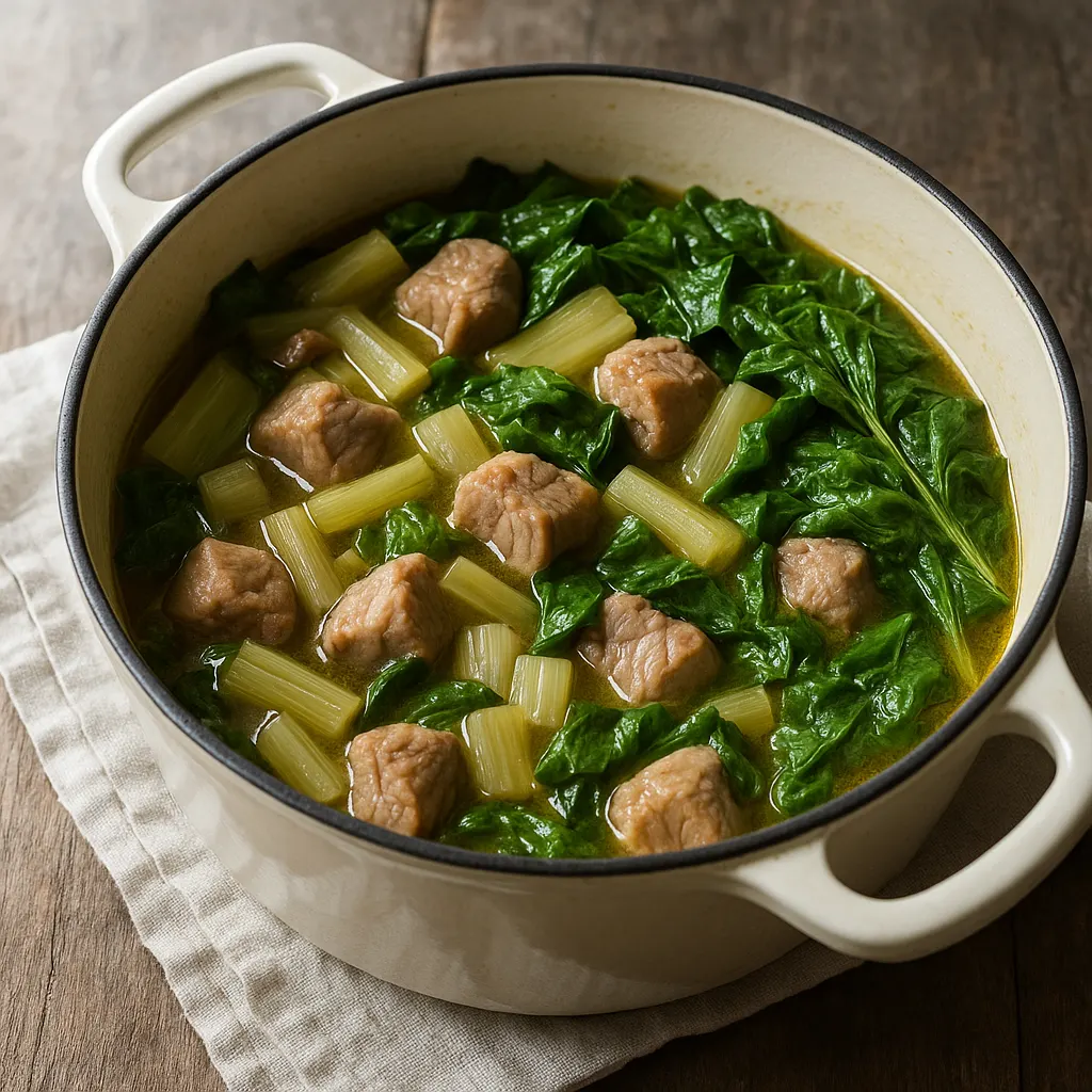 En fin de cuisson, la viande doit se couper facilement, sans partir en fibres sèches. Les côtes de blettes doivent être tendres avec encore un peu de mâche. Le jus, lui, doit napper légèrement la cuillère. S’il semble trop fluide, laissez réduire quelques minutes à découvert. S’il a trop serré, ajoutez un peu d’eau chaude ou de bouillon.