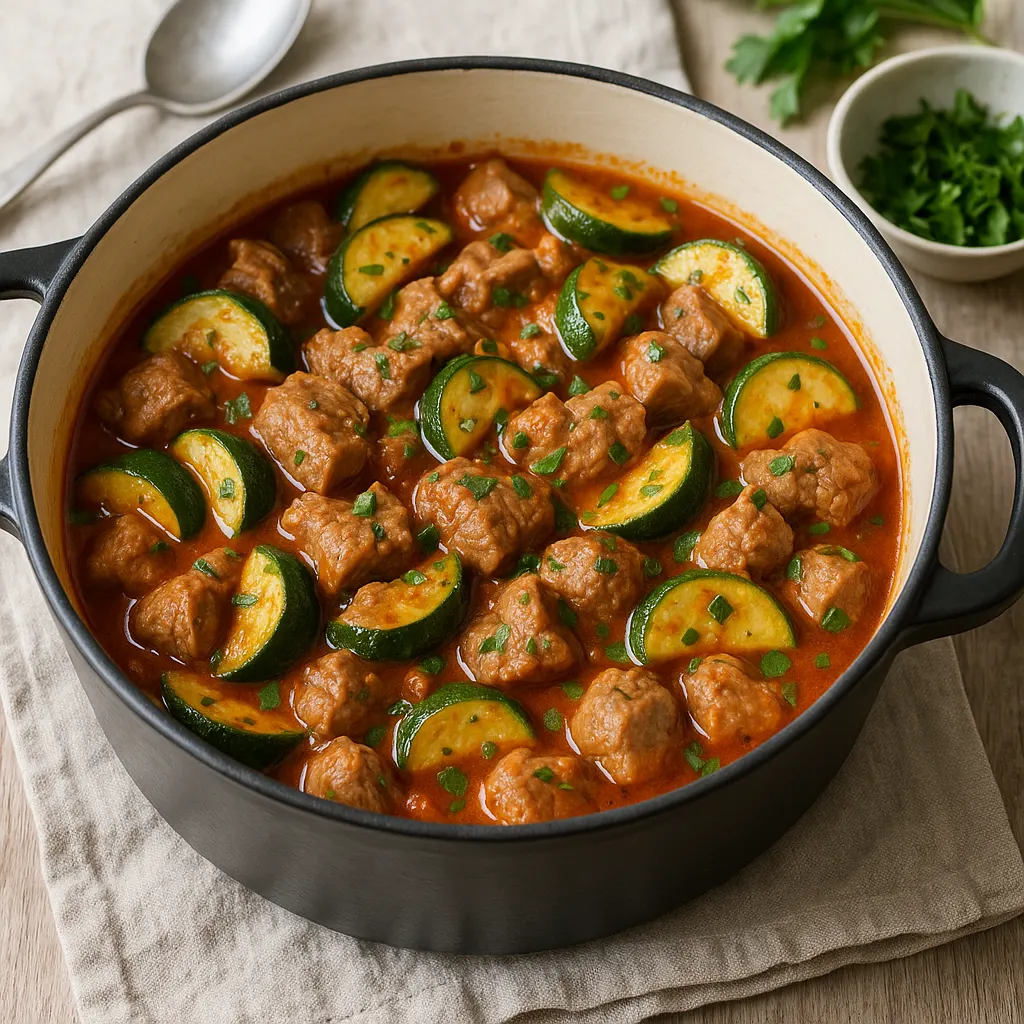 Laissez reposer la cocotte 5 à 10 minutes hors du feu avant de servir. La sauce se pose un peu, la viande se détend, et les courgettes gardent mieux leur forme si on évite de remuer trop fort.